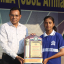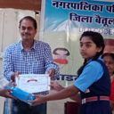 “State Vollei Ball representator Ms. Raksha Kokate receiving award from CMO, Amla.”